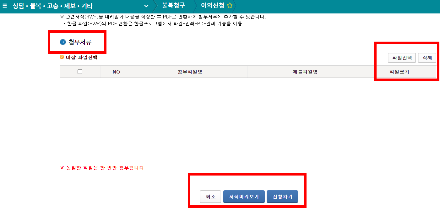 ✔ 서식제출은 '이의신청' 양식 다운로드 후 작성