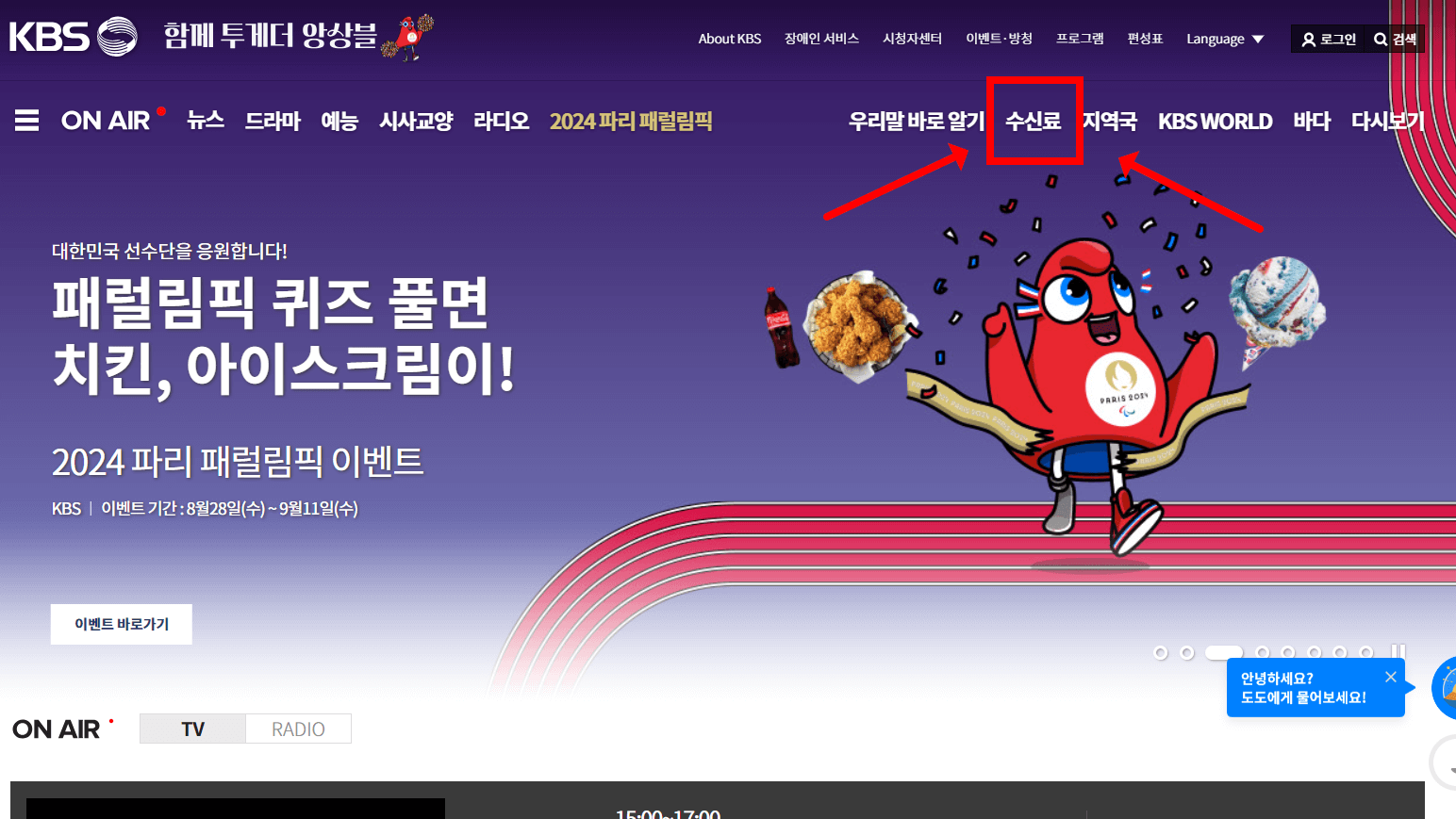 ✔ 우측 상단에 '수신료'를 클릭합니다.
